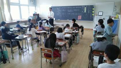 入学式のあと、4年1組では、日直用の名札(名前)をかいたり、4年生の誓いを考えたりしていました。1年間使う名札だとおもうので、格好よくかけるといいですね。