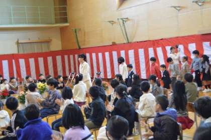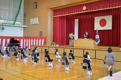 入学式を行いました。18名の1年生が体育館に入場しました。