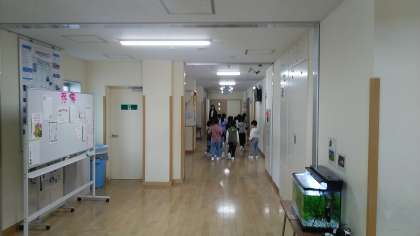 1年生は、2時間目に学校探検をしていました。ちょうど家庭科室の中を興味津々で見ているところでした。