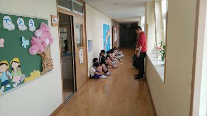4年生の2時間目は、発育測定の時間でした。廊下で姿勢よく座って、静かに順番を待っているところでした。