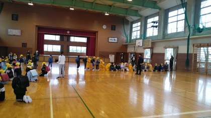 体育館に集合したあと、集団下校しました。