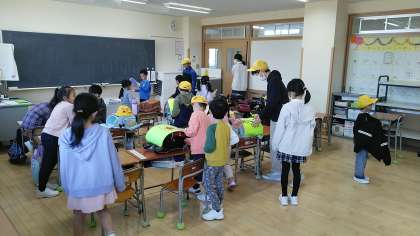 今日も朝から1年生教室に6年生がいます。6年生さん、ありがとうございます。