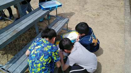 3年生の3時間目は、理科の学習でした。虫メガネを持って外に出ていました。何を見付けたのかと聞くと、「ダンゴムシ」や「ハサミムシ」を見付けたと教えてくれました。