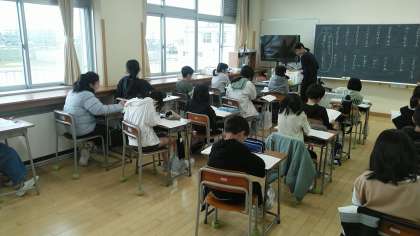 5年生の1時間目は、国語科の学習でした。詩をノートに写して、筆者の伝えたいことについて考えていました。