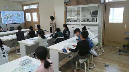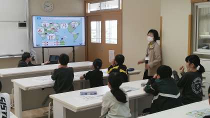 4年2組の2時間目は、外国語活動の時間でした。日本の周りの国々について考えていました。
