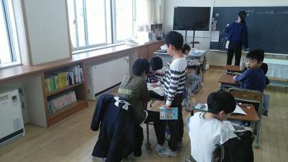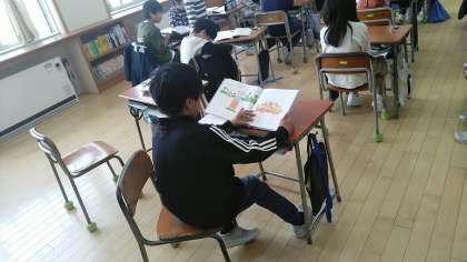 3年生教室では、自動車文庫で新しく借りた本を早速、読んでいました。