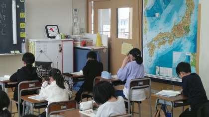 4年1組の3時間目は、国語科の学習でした。あまんきみこさんの「白いぼうし」をみんなで音読していました。最後のもんしろちょうが飛んでいる場面は、とてもいい感じでした。