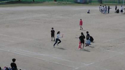 2時間目にグラウンドを見ると、5年生が走っていました。よくよく見ると、何やらリレーらしいことをしていました。