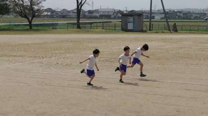 3年生の3時間目は、体育科の学習でした。グラウンドで腕を振ったり、ダッシュをしたりするなど、速く走るための練習をがんばっていました。
