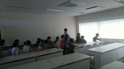 1年生は、3時間目に学校探検をしていました。図工室やコンピュータ室等、特別教室のいろいろなものを見付けていました。