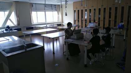 3時間目に2年生は、聴力検査をしていました。静かに待って検査を受けていました。