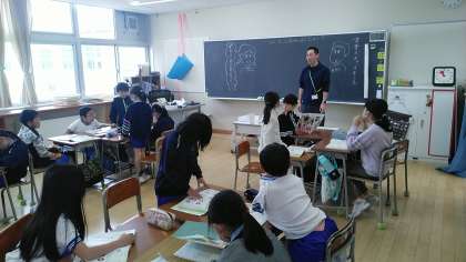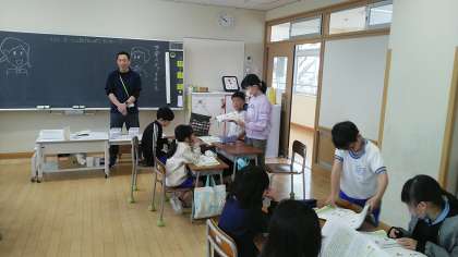 4年1組の2時間目は、道徳科の学習でした。バケツの水をこぼしてしまったときにどう言うかを実際にやってみていました。