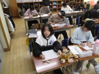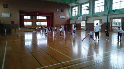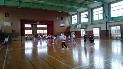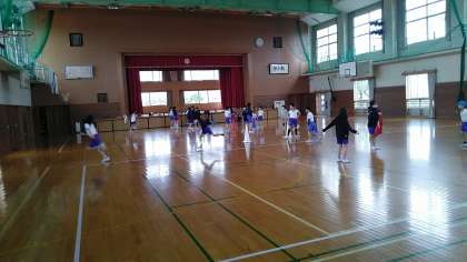 5年生は、5時間目に体育館で体育をしていました。二人のペアで、布を取ってダッシュでした人をもう一人が追いかけるというのを行っていました。