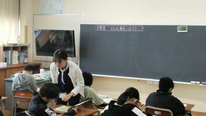 5年生の2時間目は、道徳科の学習でした。ちょうどどんな自分になりたいかをペアで伝え合っているところでした。うまく伝えられるといいですね。