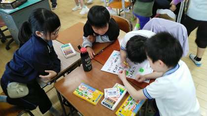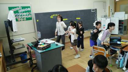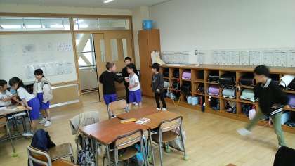 2年生は、2時間目にかかりの仕事をしていました。仕事内容を紙にかいたり、お笑いやダンスの練習をしたりするなど、かかりごとに仕事を進めていました。