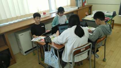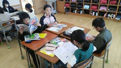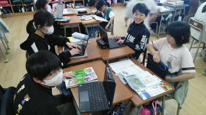 5年生の3時間目は、社会科の学習でした。「低い土地の様子」と「高い土地の様子」について、教科書や資料集、クロームブック等を使ってグループごとに調べていました。
