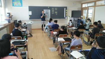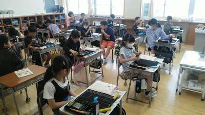 4年1組の2時間目は、書写の学習でした。墨汁を出す量について考えているところでした。