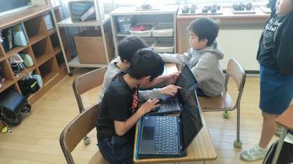 4年2組は、2時間目に係の仕事について話し合っていました。クロームブックを使いながら話し合っていました。