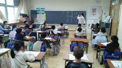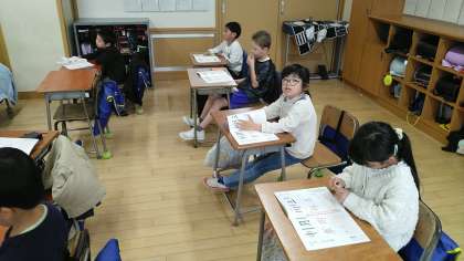 2年生の5時間目は、しょしゃの学習でした。書き順を確かめてから丁寧に練習していました。