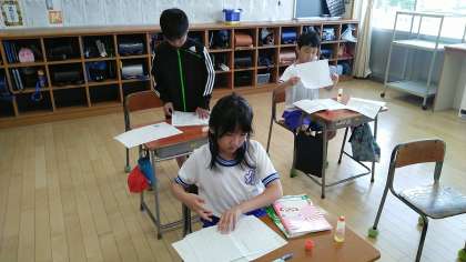 3年生の2時間目は、国語科の学習でした。これまで書いてきたワークシートやプリント等をノートに貼って、ノートづくりをしていました。