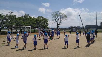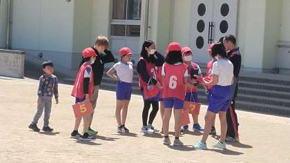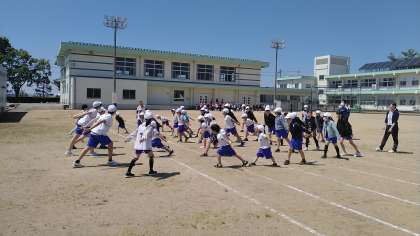 お昼休みも団ごとに別れて練習していました。全体練習が終わると6年生だけが残って反省会も…。