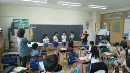 2年生の3時間目は、音楽科の学習でした。こいぬのビンゴの曲を使って、手をたたいてリズムの学習を楽しんでいました。
