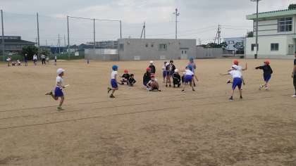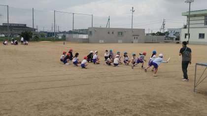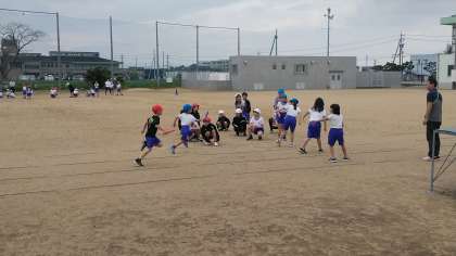 昼休みに代表選手のリレーの練習がありました。バトンパスの仕方を教えてもらってから、実際に走ってみました。