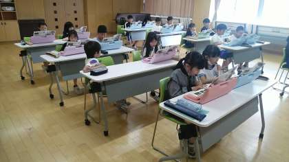 4年1組の4時間目は、音楽科の学習でした。音楽室で鍵盤ハーモニカの練習をしていました。