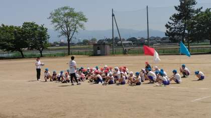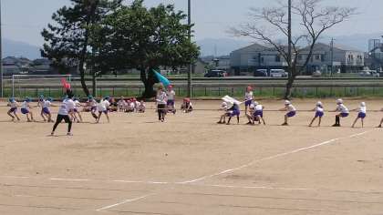 5・6年生は、5時間目に綱引きの練習をしていました。全体で練習する前に、動きだけでも把握しておこうとしていました。綱引きのあとは、大玉転がしも確認する予定だそうです。みんなのことを考えて動ける5・6年生です。