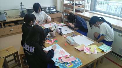 5年生の3時間目は、図画工作科の学習でした。心の模様の作品も完成間近みたいです。