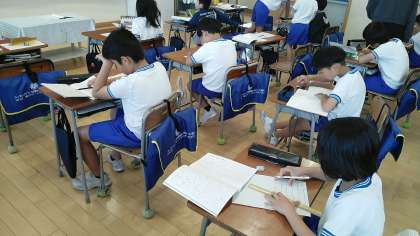 3年生の1時間目は、国語科の学習でした。漢字の学習で、音読みと訓読みの両方を使って文章を考えていました。