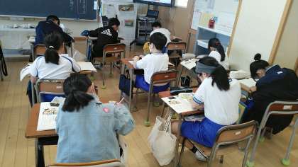 4年2組の1時間目は、国語科の学習でした。習った漢字を使って、教科書の出ている町の周りの様子を紹介する文章を考えていました。