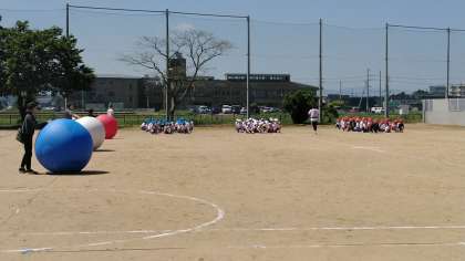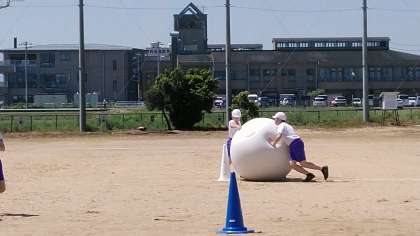 ぐんぐんタイムの時間に、大玉ころがしの練習をしました。「力を合わせる」練習を通して、思いやりの心も育つといいです。
