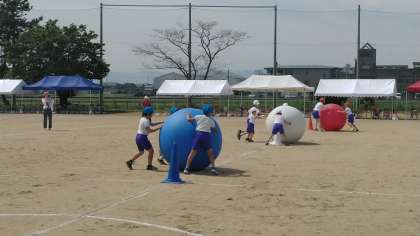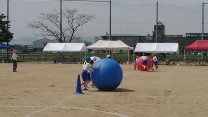 大玉ころがしです。ファミリー班でころがします。