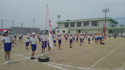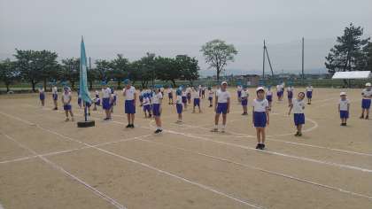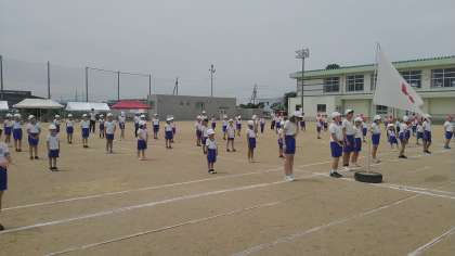 閉会式です。今日は、整列のみ練習しました。これで今日の予行練習は、終了です。本番は、18日(土)の8:40〜です。
