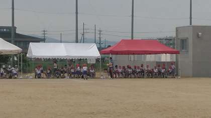 閉会式も終わって団席に戻ってきました。みんな結構疲れたみたいです。自分の目当てをちゃんと立てて頑張れることができていたらいいですね。みんなお疲れ様でした。