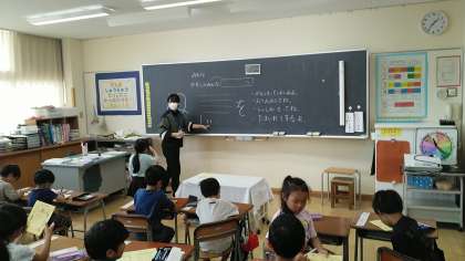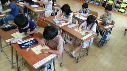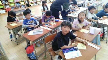 1年生は、5時間目に運動会のプログラムに渡したい人へのメッセージを考えてかいていました。今日の予行練習のことを思い出しながらかいている人もいました。