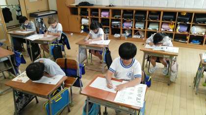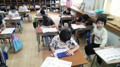 2年生の5時間目は、書写の学習でした。一文字一文字丁寧に書いていました。