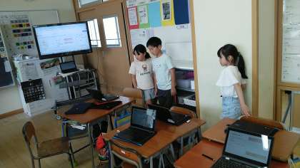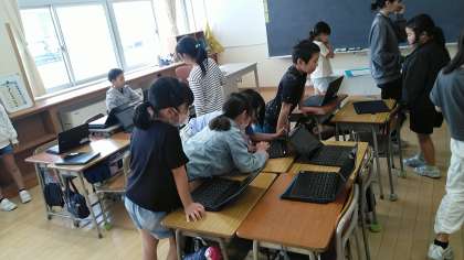 4年2組の5時間目は、社会科の学習でした。自分で選んだ県の日本一なところを調べてたり、まとめたりして、友達に紹介していました。