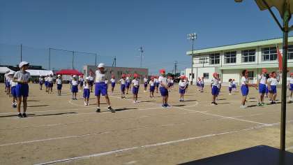 運動会が始まりました。開会式とラジオ体操です。