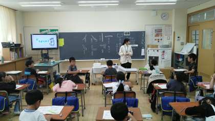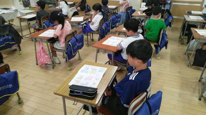 2年生の5時間目は、しょしゃの学習でした。ちょうど「まがり」の書き方の練習をみんなでしていました。