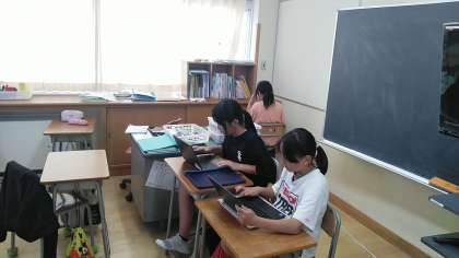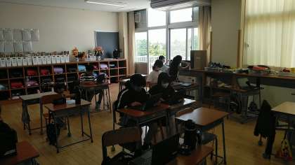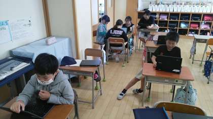 5年生の5時間目は、総合的な学習の時間で、クロームブックを使って、田植えについて調べたことをまとめていました。