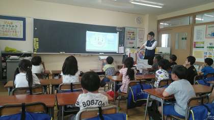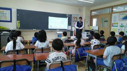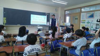 1年生の2時間目は、「くもくん教室」の時間でした。富山県警本部人身安全少年課少年サポートセンター東部分室から講師の先生に来ていただいて、プライベートゾーン等について教えてもらいました。