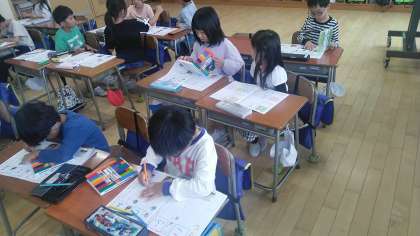 1年生の1時間目は、国語科の学習でした。ひらがなの「き」と「ま」の練習をしていました。みんな丁寧に書いていました。