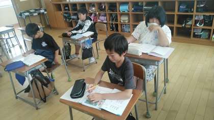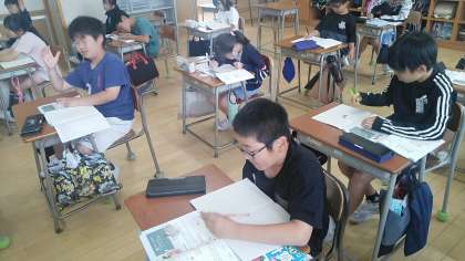 4年1組の2時間目は、算数科の学習でした。ちょうど問題を読んで式をつくっているところでした。