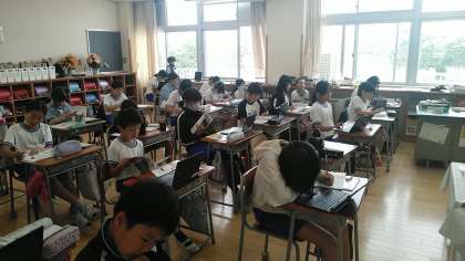 5年生の3時間目は、社会科の学習でした。暖かい土地の暮らしについて調べてまとめていました。