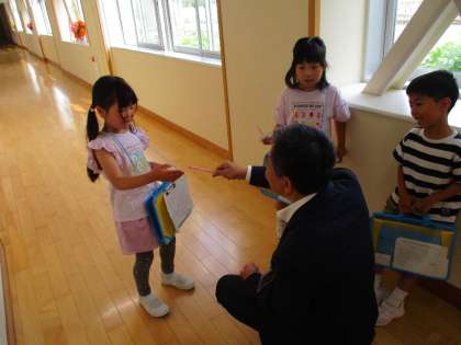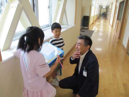廊下ですれ違った校長先生に、少しどきどきしながら声をかけていました。