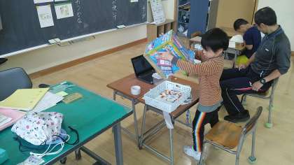 つばめ野級2組の1時間目は、使い方の学習でした。1年生は、お金の使い方、4年生は、国語辞典の使い方を学んでいました。
