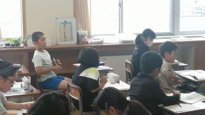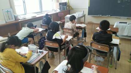 4年2組の1時間目は、国語の学習でした。お世話になった人に「お礼の手紙」を書く計画を一人一人が立てていました。