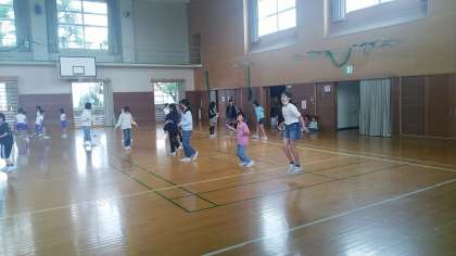 今日は、グラウンドが乾いていないので、体育館での活動となりました。